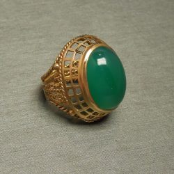 Greek Revival Gold Filigree 18KT Oval Crysoberyl Solitaire Dome Ring C1960