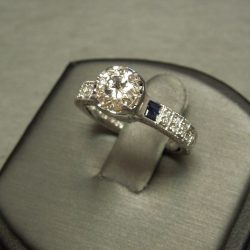 Estate Sapphire and Diamond Ring 7.50 TCW 18KT White Gold Engraved