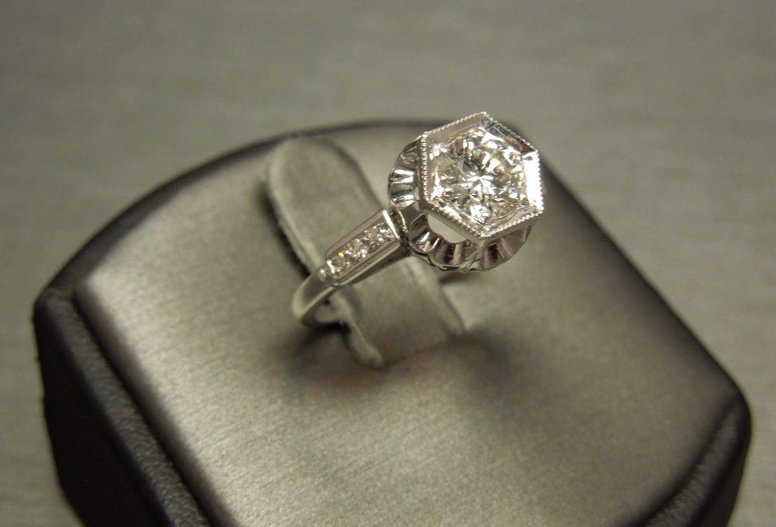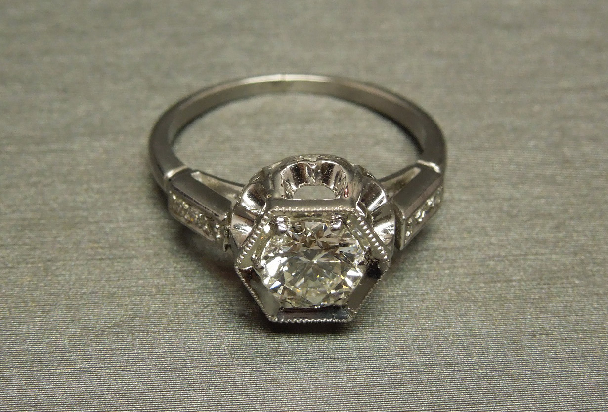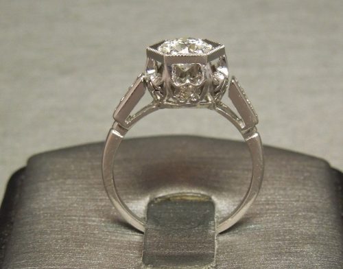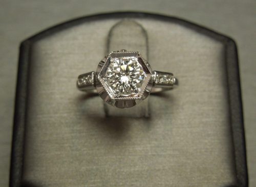 Antique Art Deco Platinum Diamond Engagement Ring 1.06TCW Hexagon G VS1 0.92ct C1930