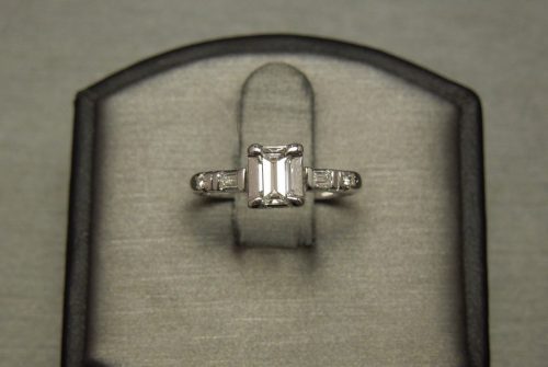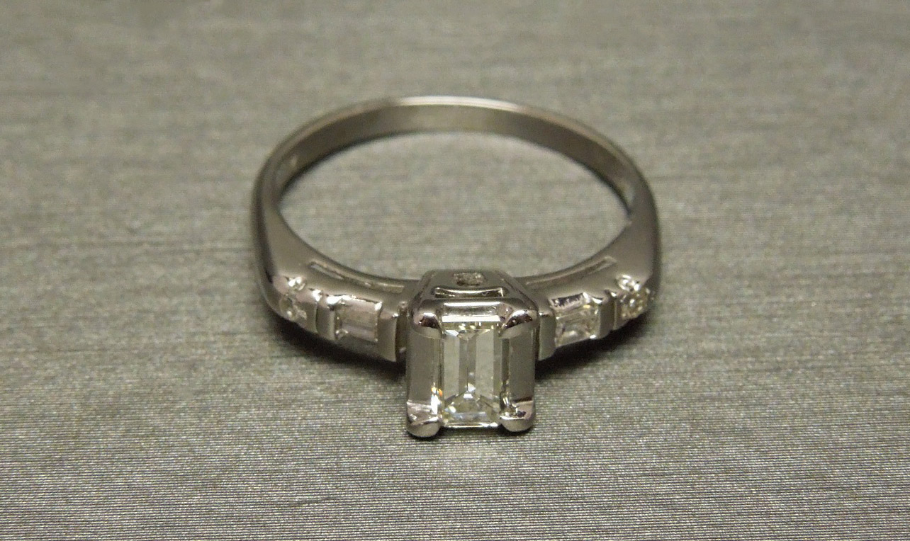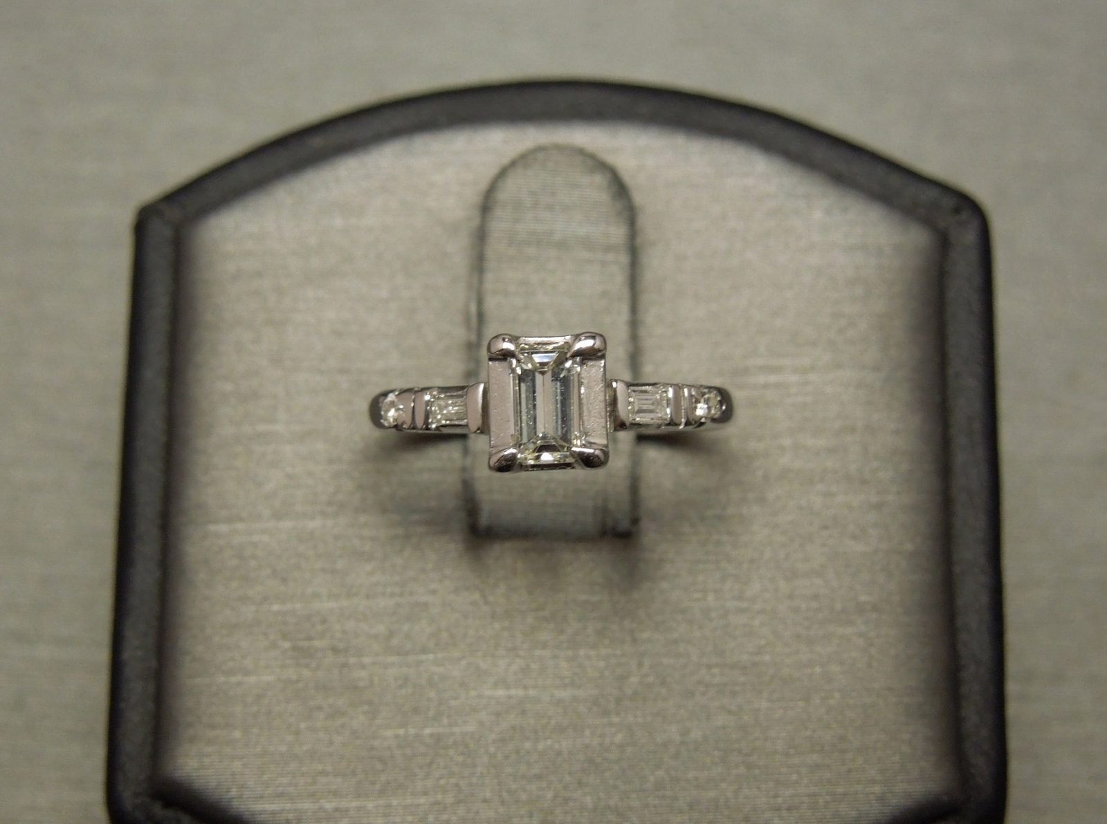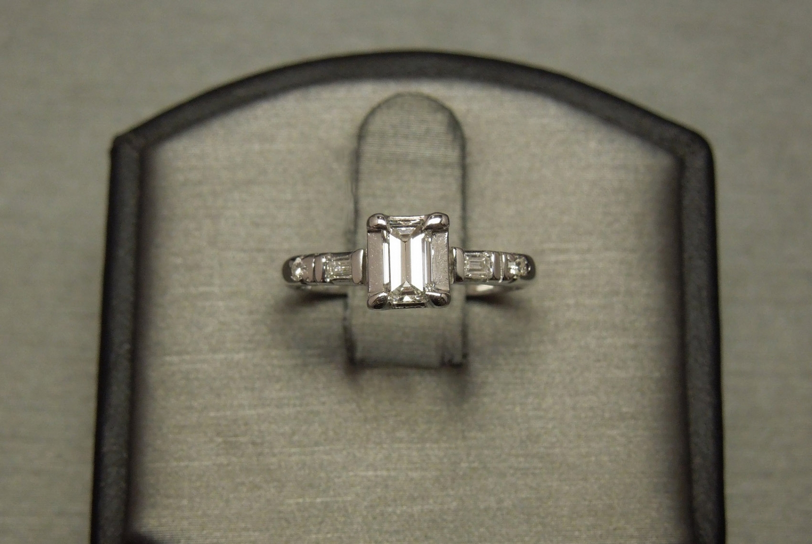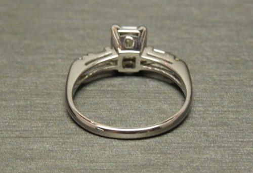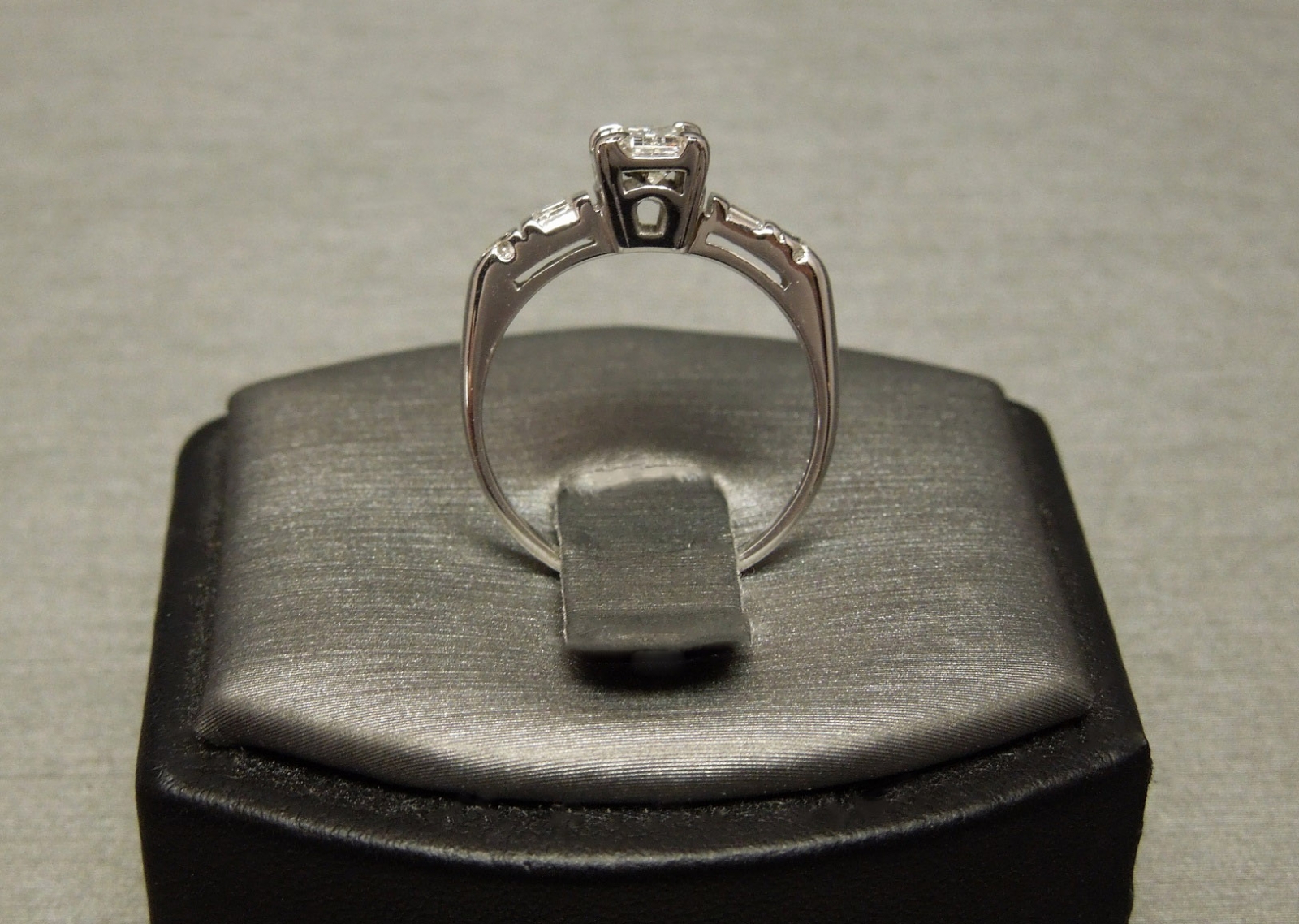 Surrounded by 2 (1/ea) Nearly Colorless Nearly Flawless Rectangular Baguette cut Side Diamonds