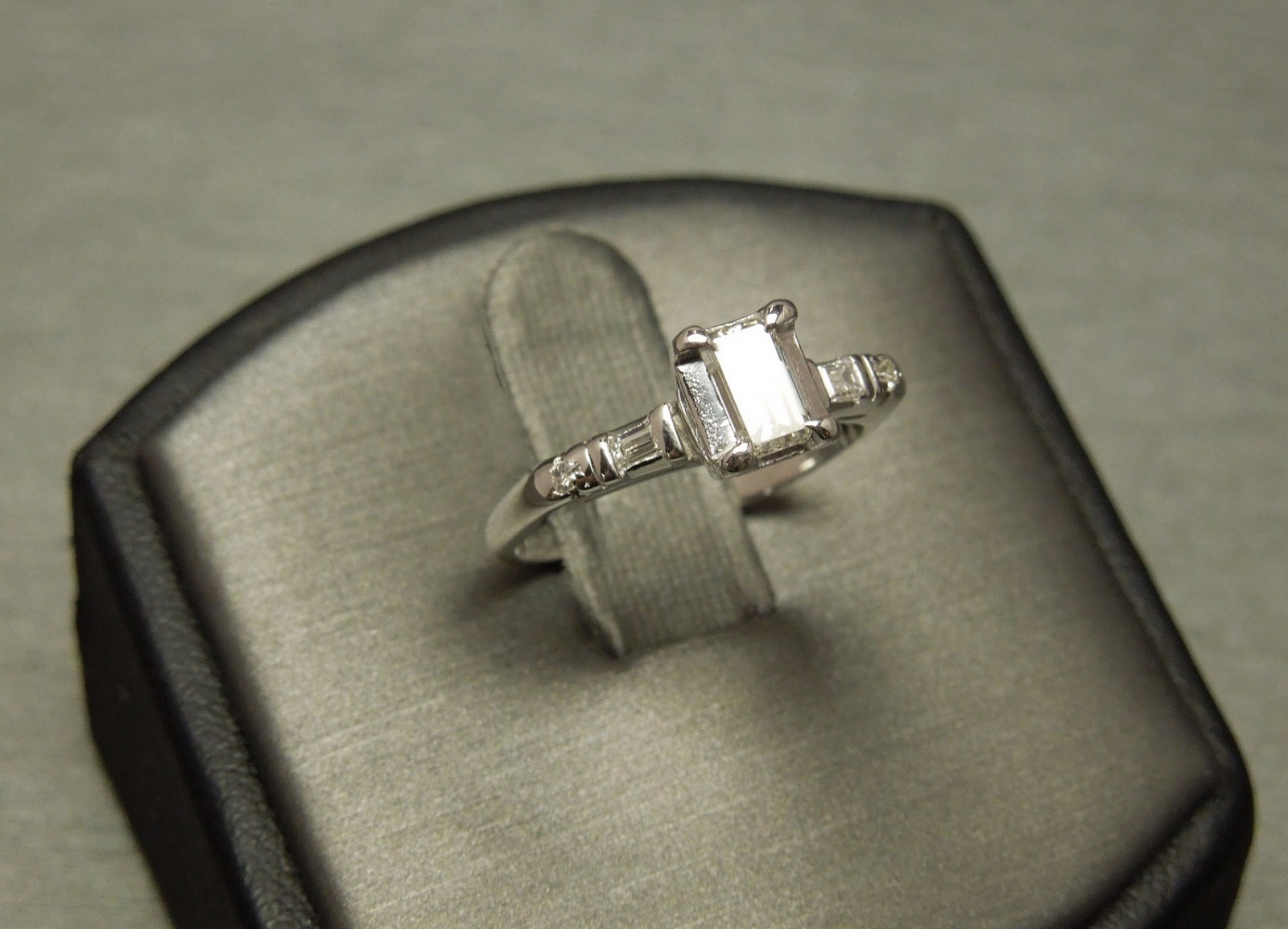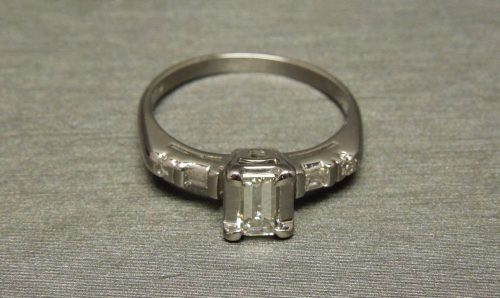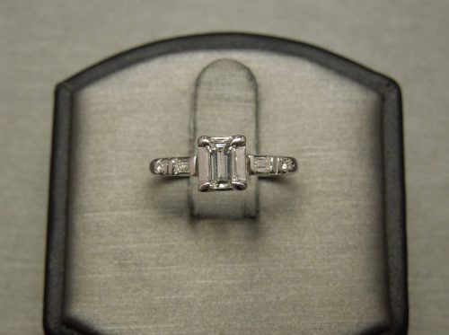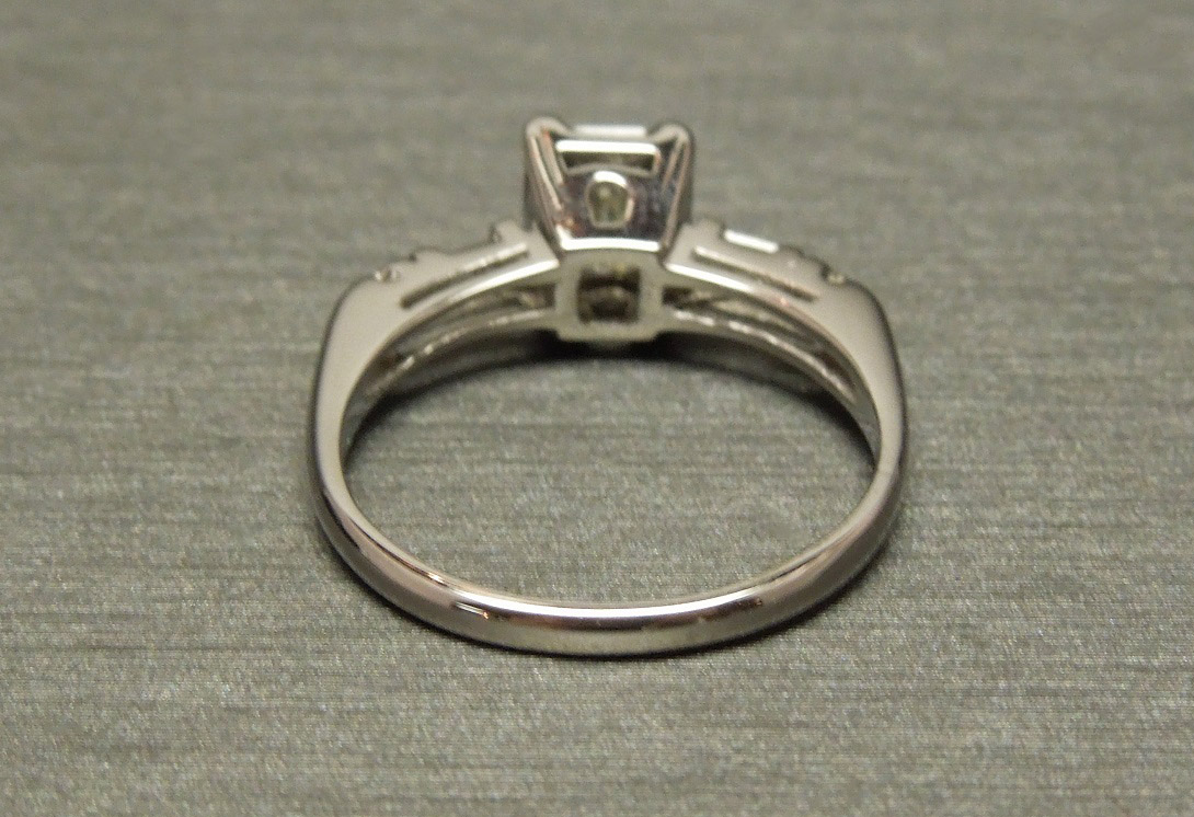 Vintage Emerald cut Diamond Engagement Illusion Ring 0.63TCW 14KT White Gold C1950