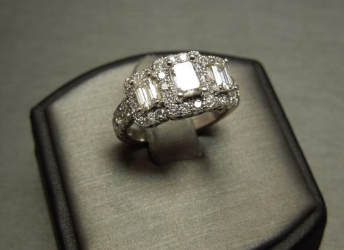 Going down each side of shank are 3 Nearly Colorless Nearly Flawless Round Brilliant cut Diamonds