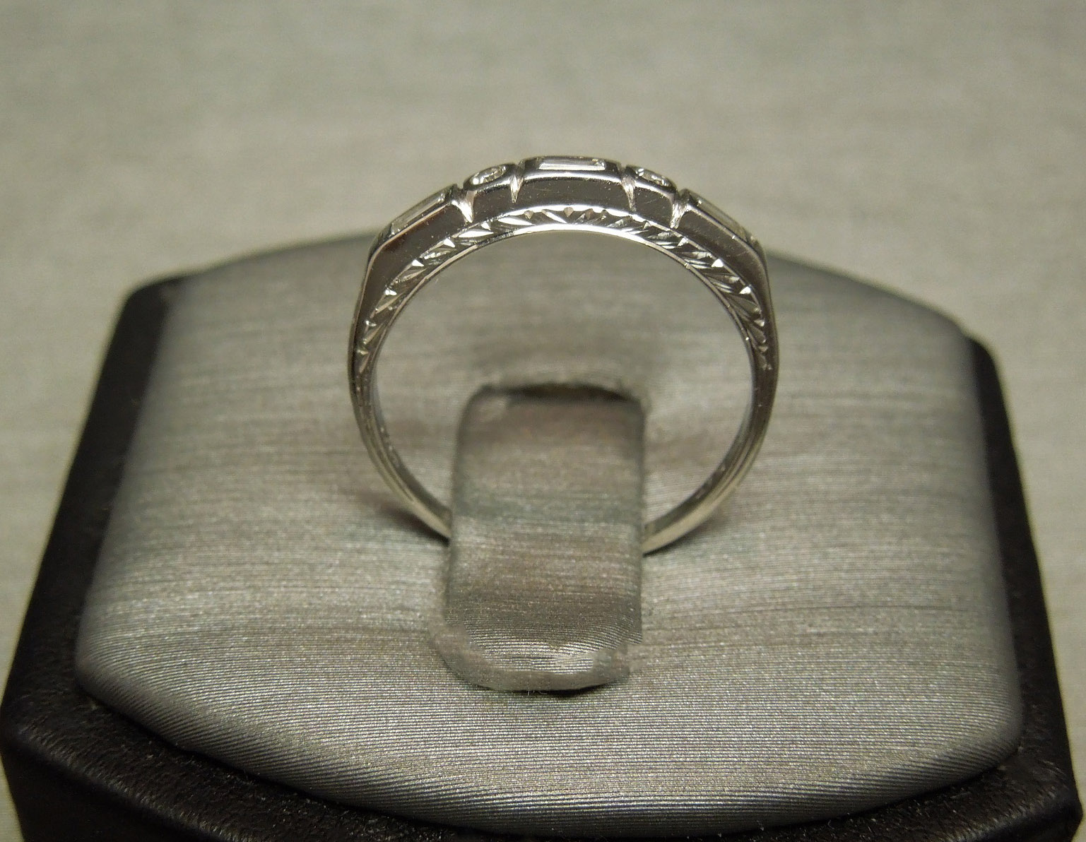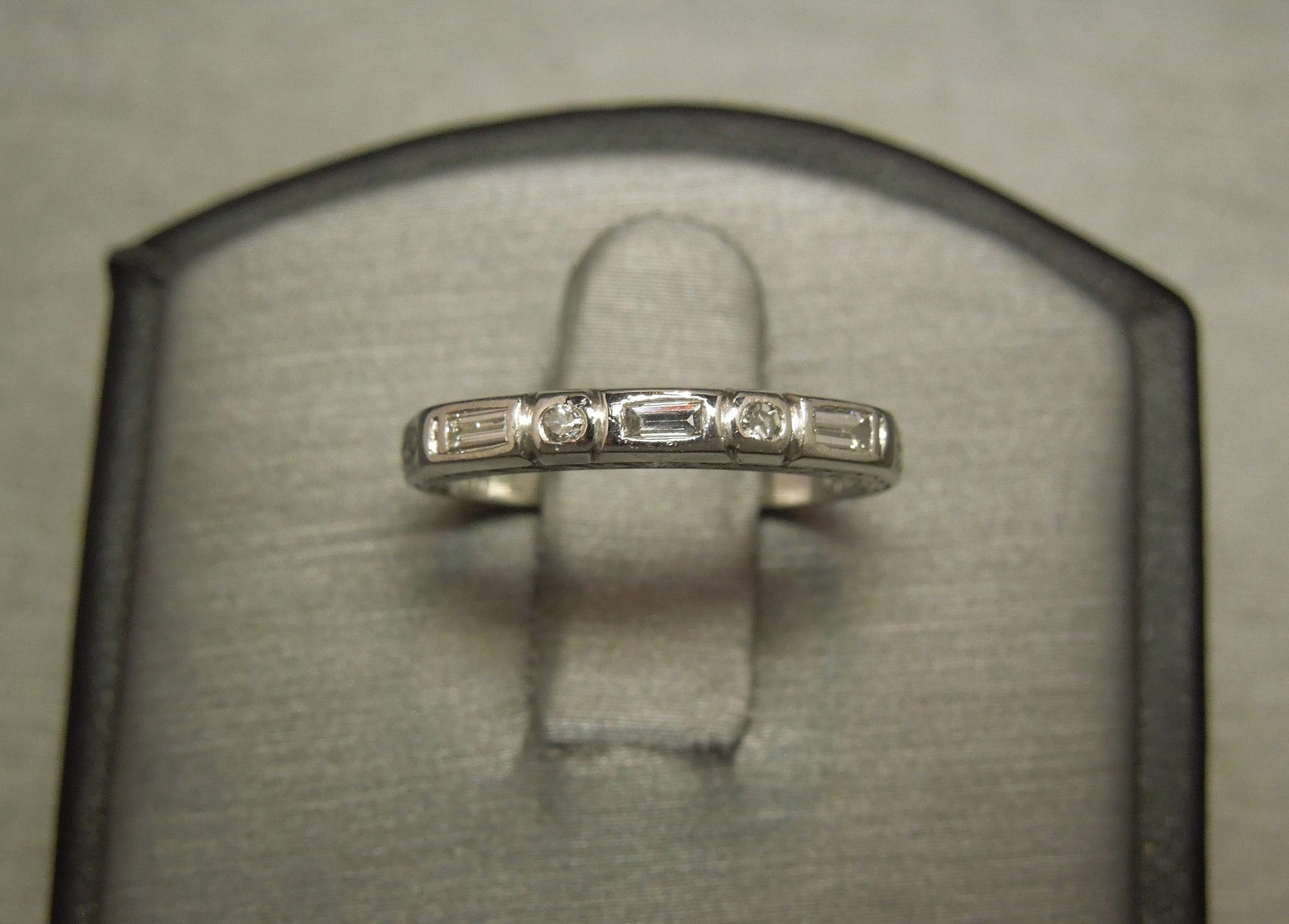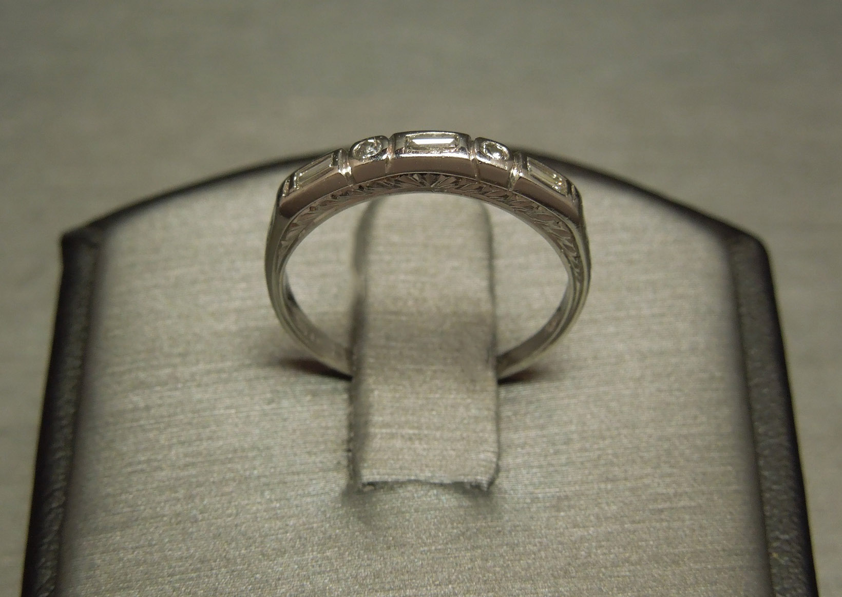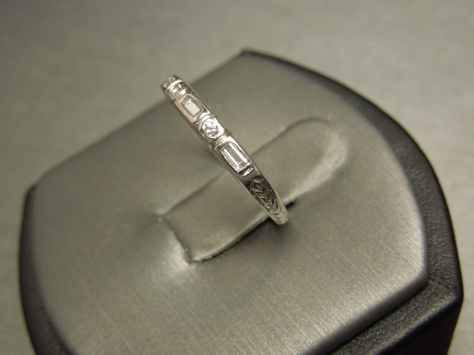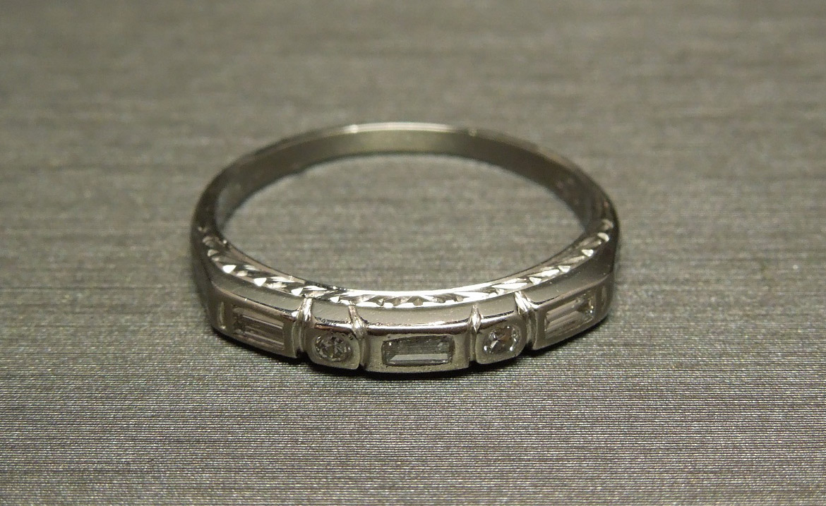 Engraved Platinum Baguette & Round Diamond Band 0.20TCW C1920