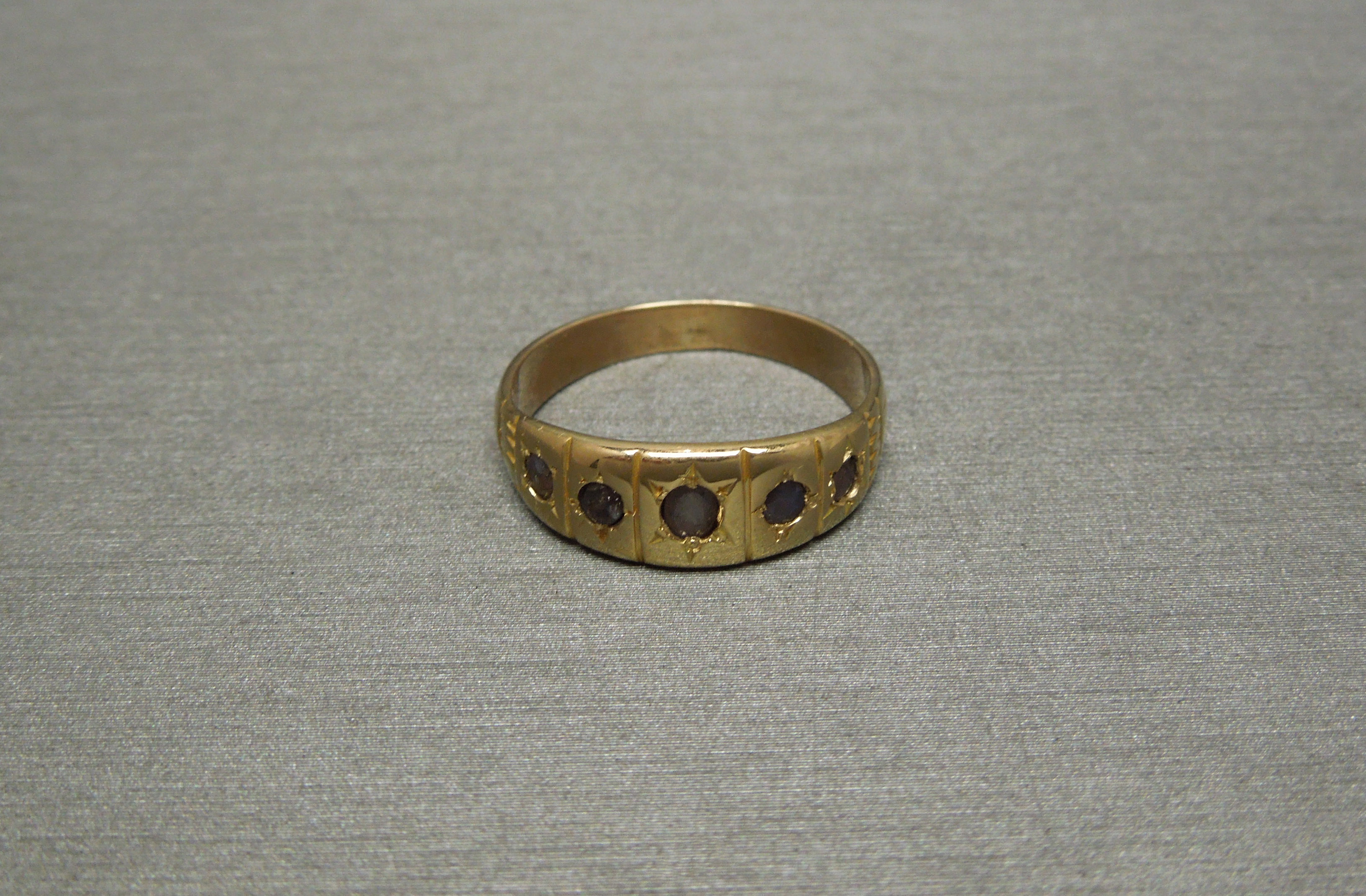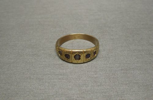 18KT Gold 0.35TCW Blue-Green Alexandrite Victorian Wedding Band C1880
