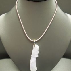 Vintage Hand Carved Jade Sword Chinese Lavender Jade Pendant 10KT Gold 0.13TCW Sapphire & Diamond Bale C1980