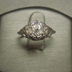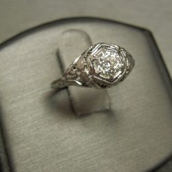 Antique 18KT White Gold Filigree European cut Diamond 1 carat Solitaire Engagement Ring C1910