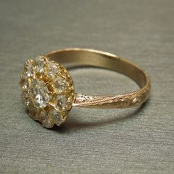 SOLD Edwardian Rose Gold Engraved 1.70TCW Old European cut Diamond Engagement Ring C1870